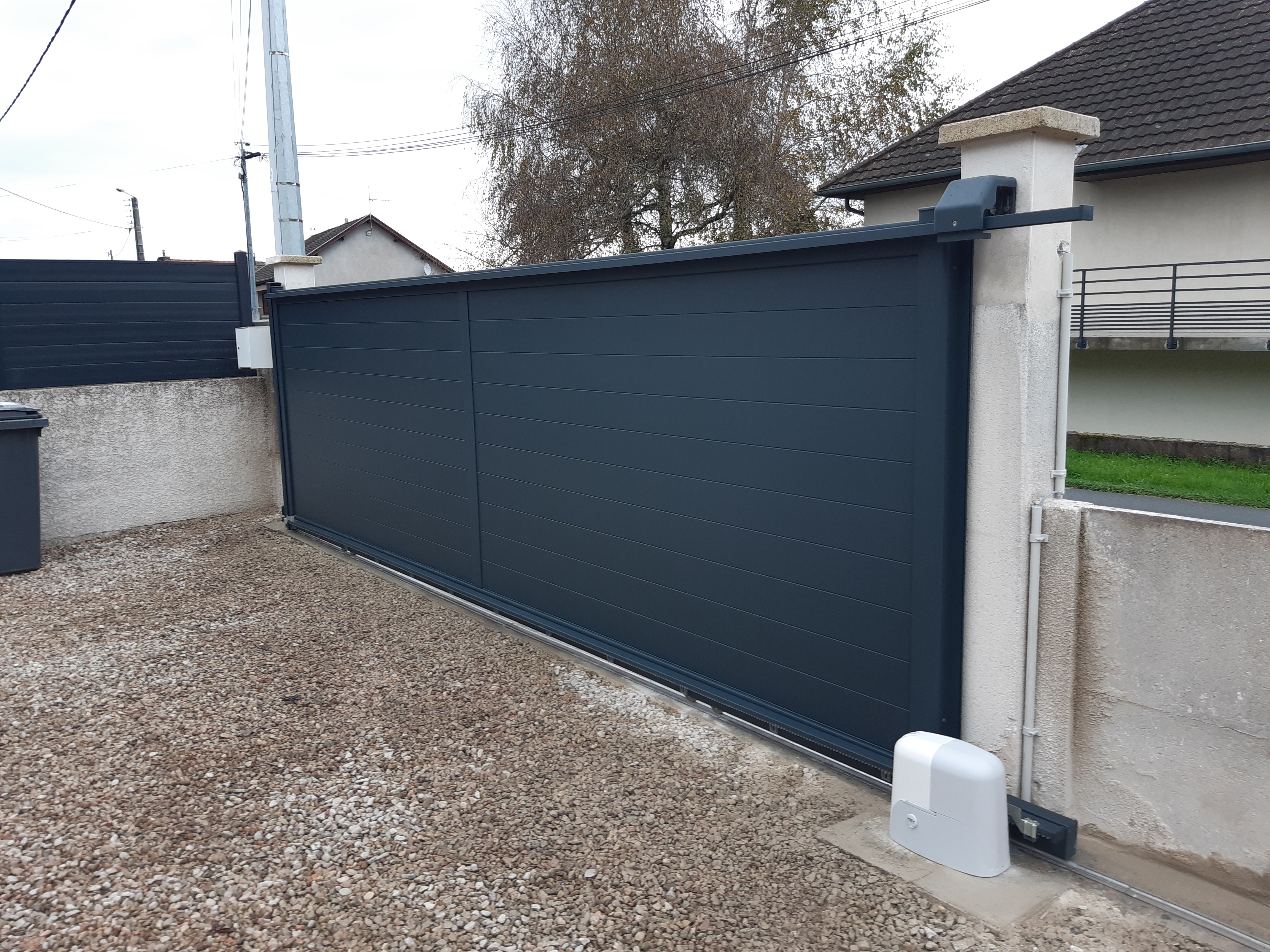 Pose d'un portail coulissant de grande taille (5m50 de large x 1.75m de haut). Poseurs très pro, appliqués, précis dans les conseils. Merci à bastien pour l'accompagnement ;)