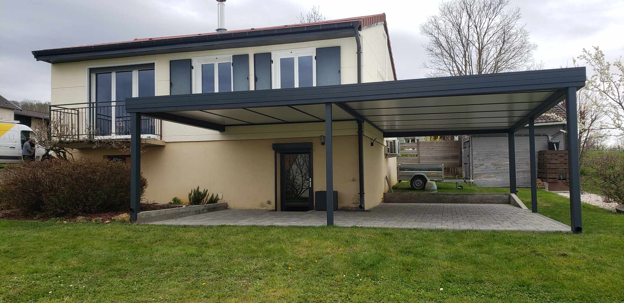 Concept de auvents de garages proposé par GRAU ALU étudié etrealise par leurs soins. Résultat magnifique et ce qui ne gâche rien mis en place par une bonne équipe de professionnels