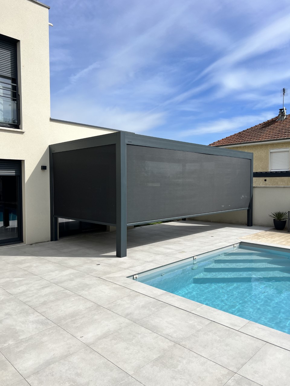Installation à notre domicile d’une pergola bioclimatique dotée de parois vitrées fixes et coulissantes ! Travaux très bien réalisés ! Équipes de monteurs au top ! Nous recommandons !