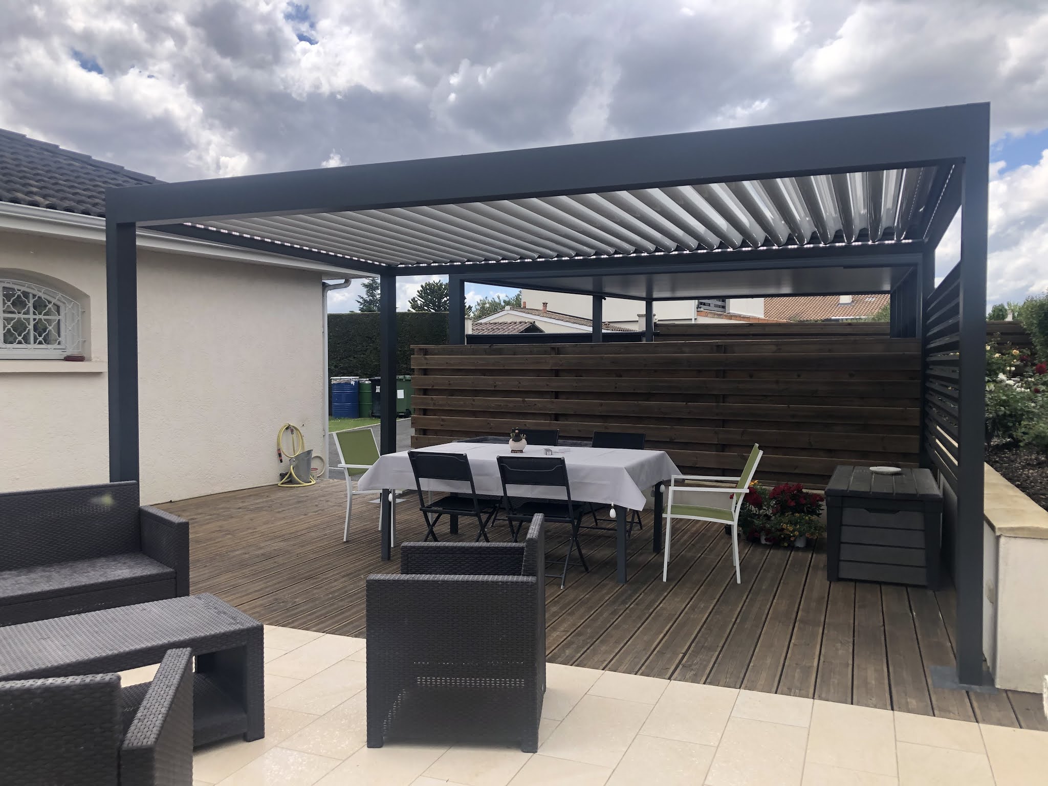 Très belle réalisation d’une pergola bioclimatique sur mesure.