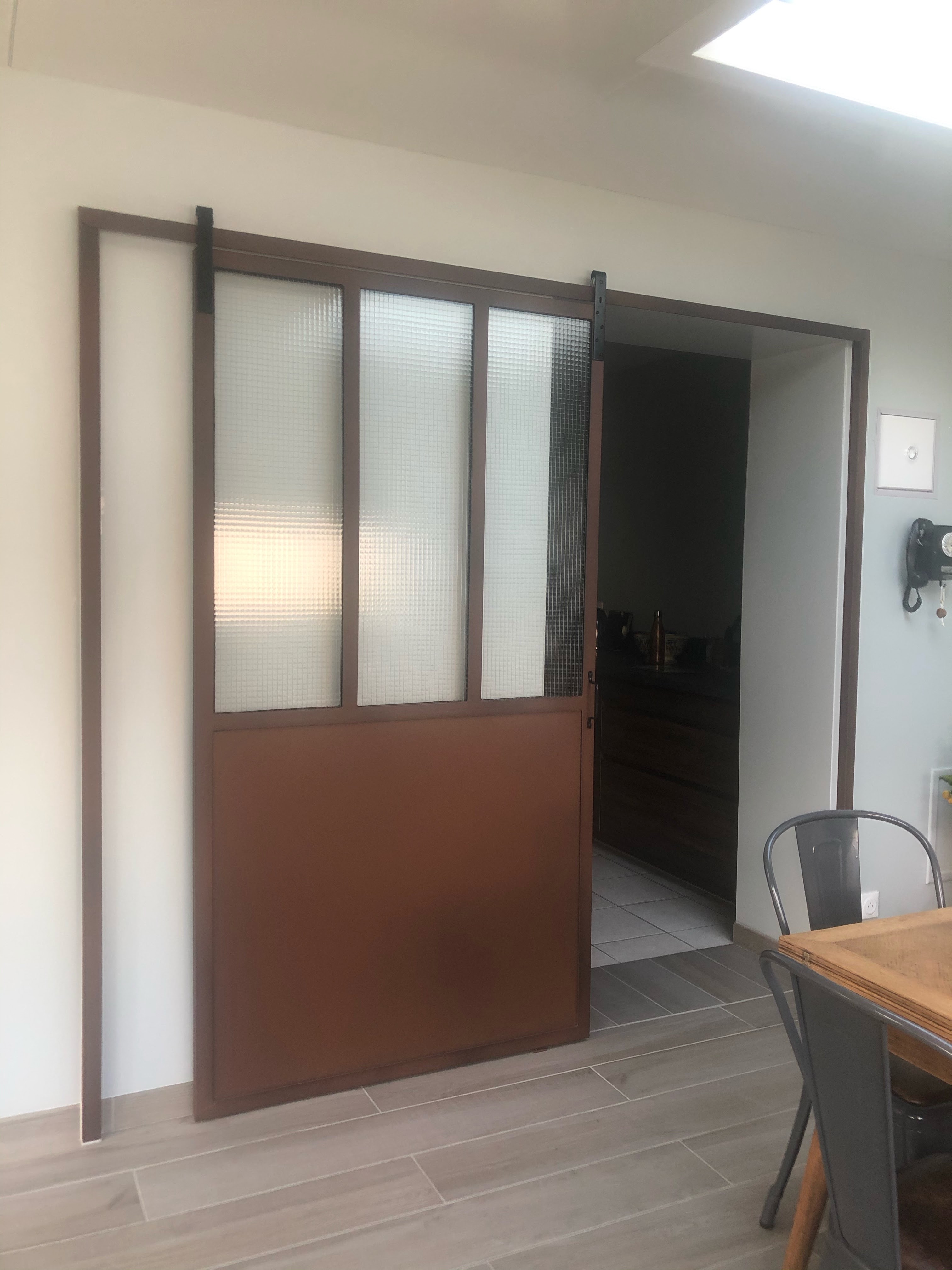 Pose d'une baie vitrée en lieu et place de deux portes vitrées. Trés content du résultat et de la prestation de l'Atelier de la Création. Merci.