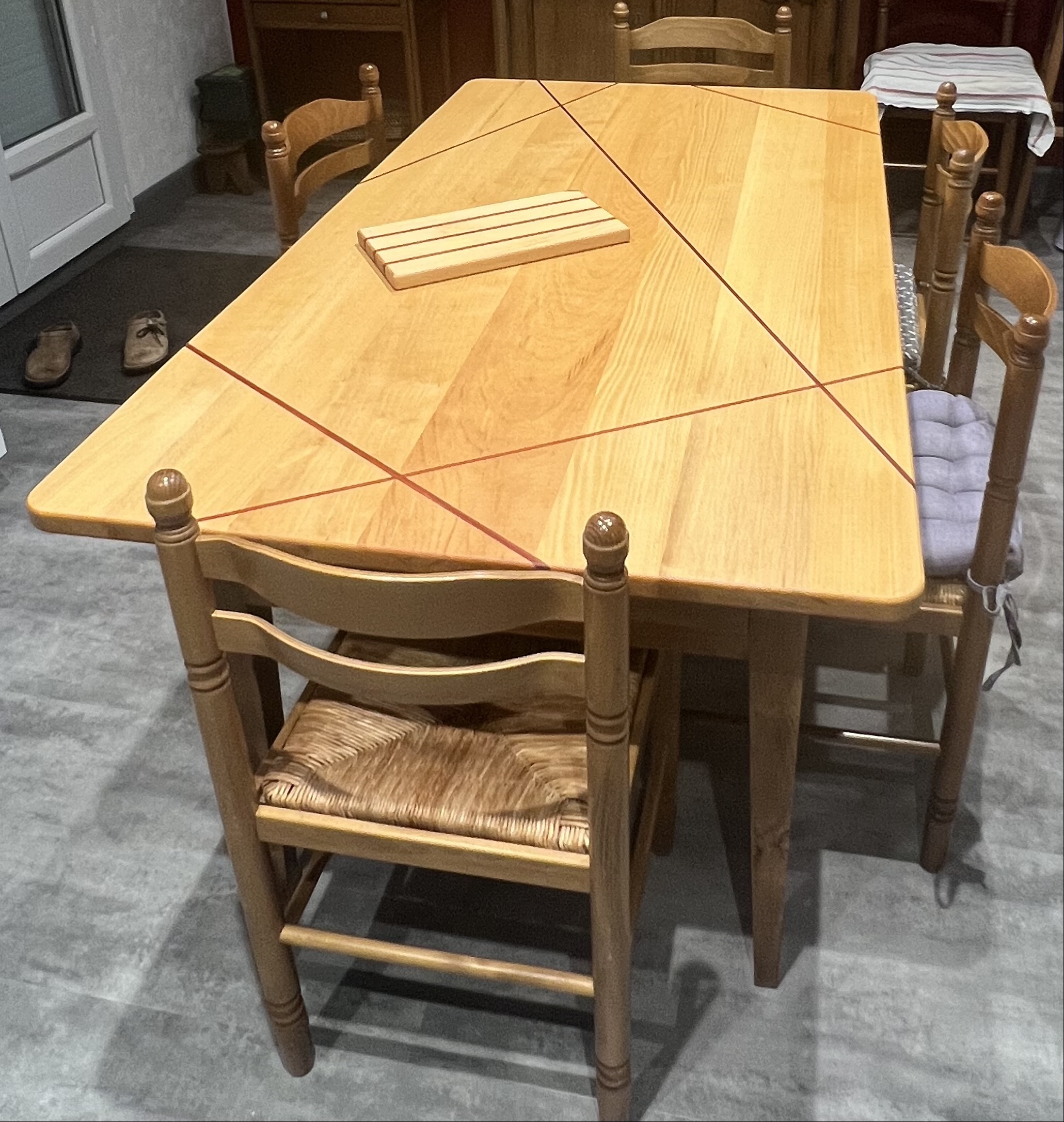Nous avons découvert cette jeune menuisière proche de chez nous grâce à notre fille ! Nous lui avons confié avec bonheur la réalisation d’un plateau de table pour notre cuisine (l’inclusion de padouk dans le plateau en hêtre est pour nous du plus bel effet). Cette professionnelle, toujours souriante, est à la fois à l’écoute et force de proposition. Nous sommes très satisfaits de son travail et ne manquerons pas de lui confier de nouveaux projets. Ah j’oubliais, Mariette nous a confectionné et offert un joli dessous de plat coordonné avec la table ! Merciiii !