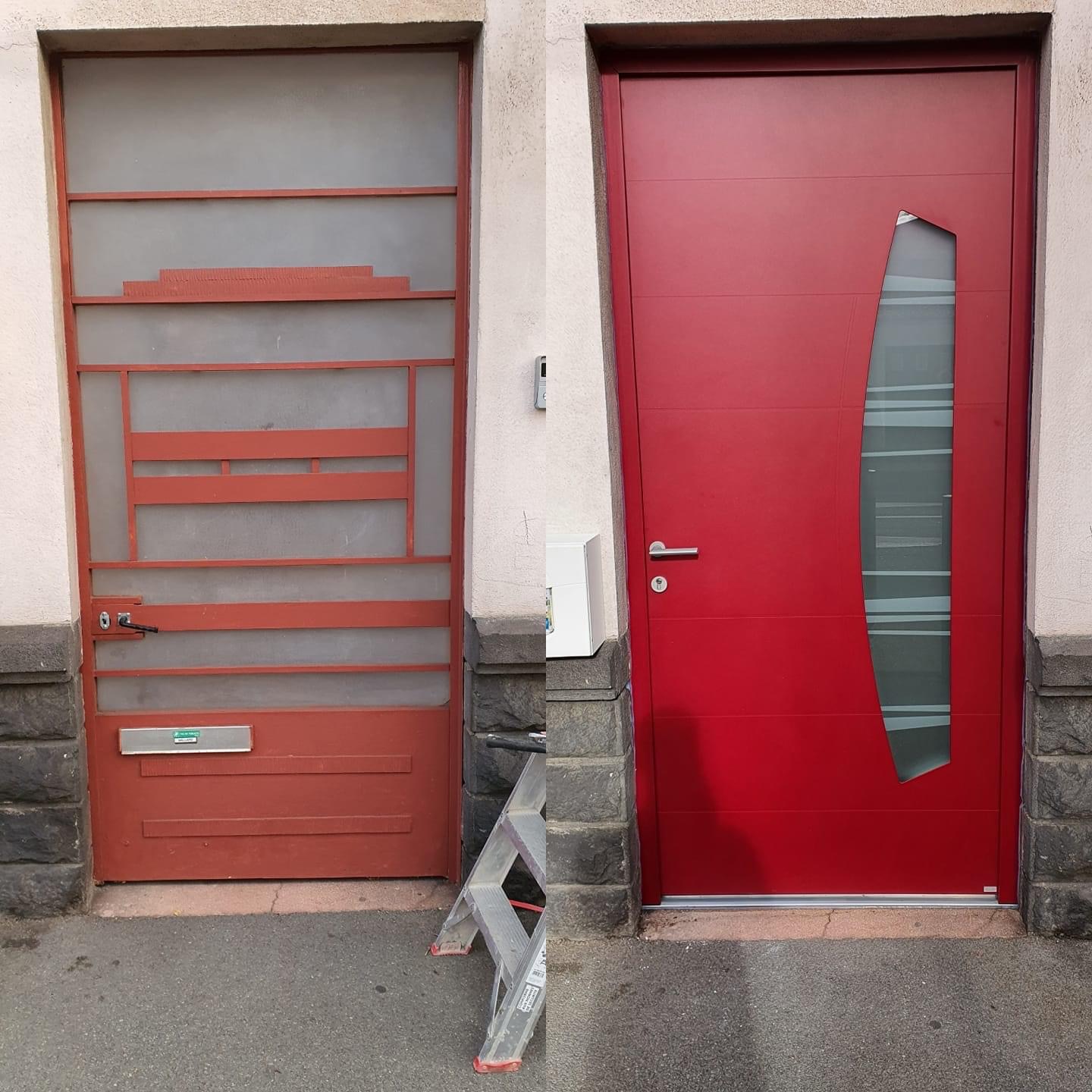 La rénovation de la façade de ma maison a été mise en valeur par 2 portes d'entrée rouge, modèle Athena, de chez Bel'M. Esthétisme et qualité me confortent dans mon choix.