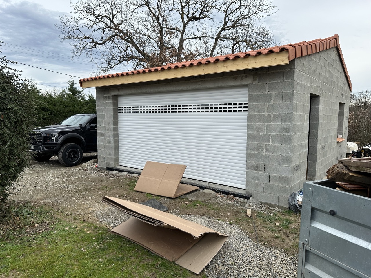 Mise en place d’une porte de garage sectionnelle Très satisfait Équipe de professionnels Travail sérieux et rapide Pose très précise Chantier très propre Merci à ARMAN et son équipier