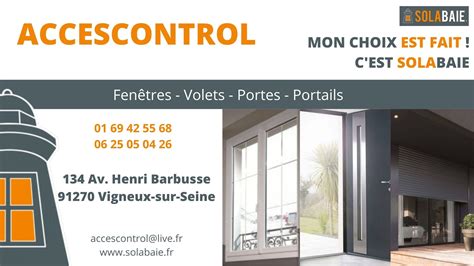 Voici toutes les informations sur le Menuisier Solabaie Accescontrol qui ce trouve au 134 Av. Henri Barbusse, 91270 Vigneux-sur-Seine (91). Sur cette fiche vous trouverez les photos, l'adresse, les horaires d'ouverture, le numero de téléphone et les avis clients.Vous pouvez églement rédiger un avis si vous le souhaitez en bas de page.