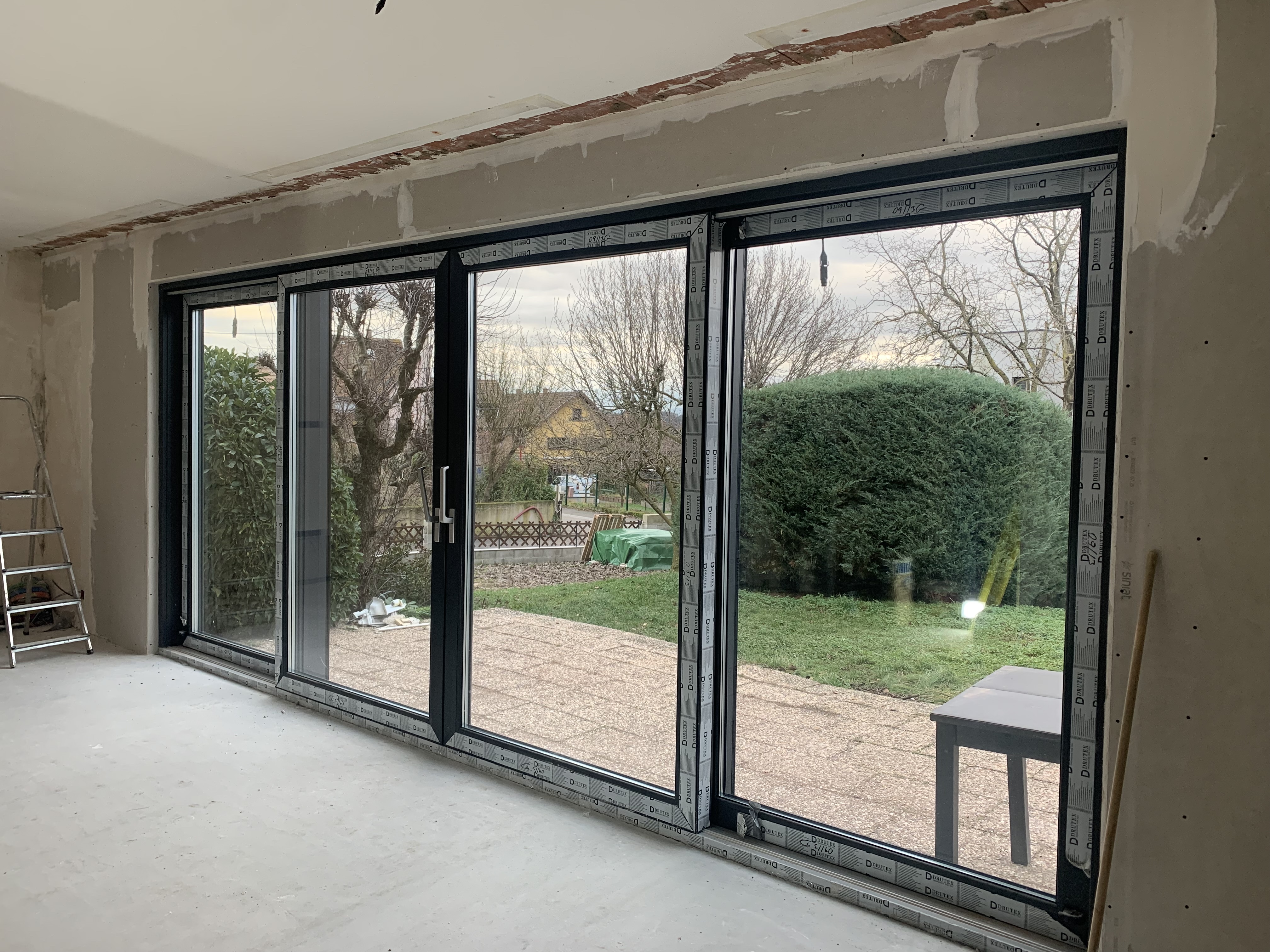 La pose de nos baies vitrées s'est très bien passée. Les poseurs ont nécessité une journée pour poser un ensemble de 5 menuiseries en Aluminium et verre. L'ensemble est arrivé au bonnes dimensions et les finitions sont à la hauteur de nos espérances. Merci !